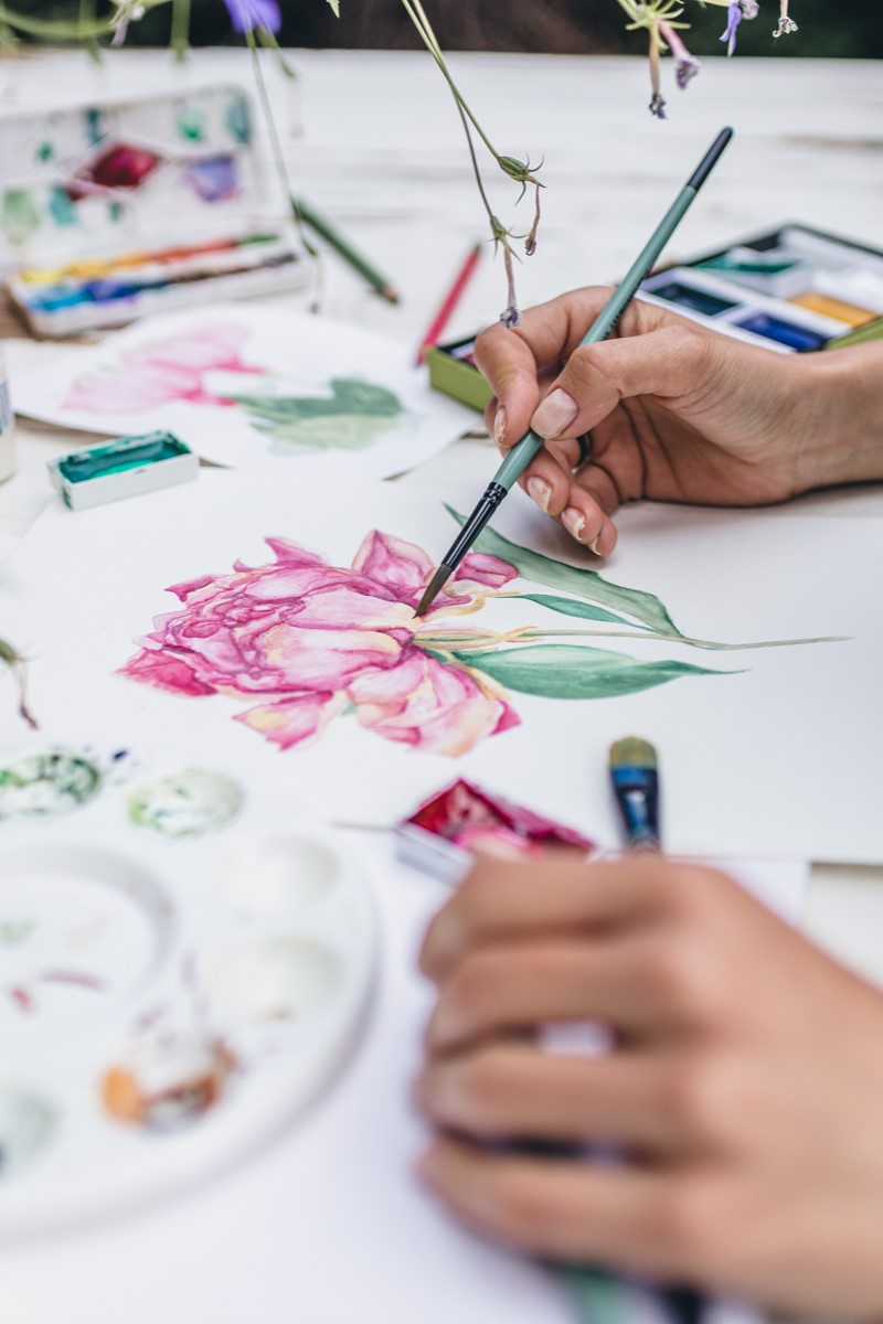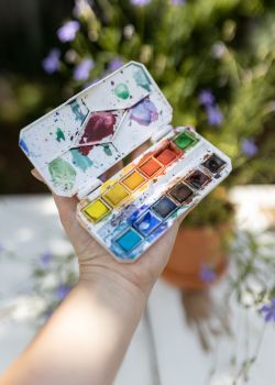 - pozna podstawowe techniki malowania akwarelą,