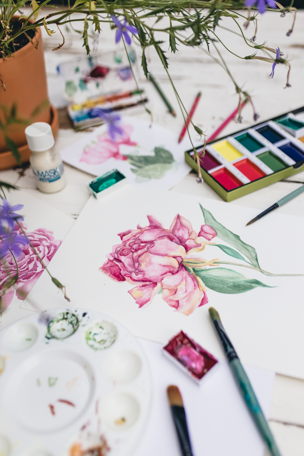 - wykona, pod okiem doświadczonej instruktorki swój pierwszy akwarelowy obraz,