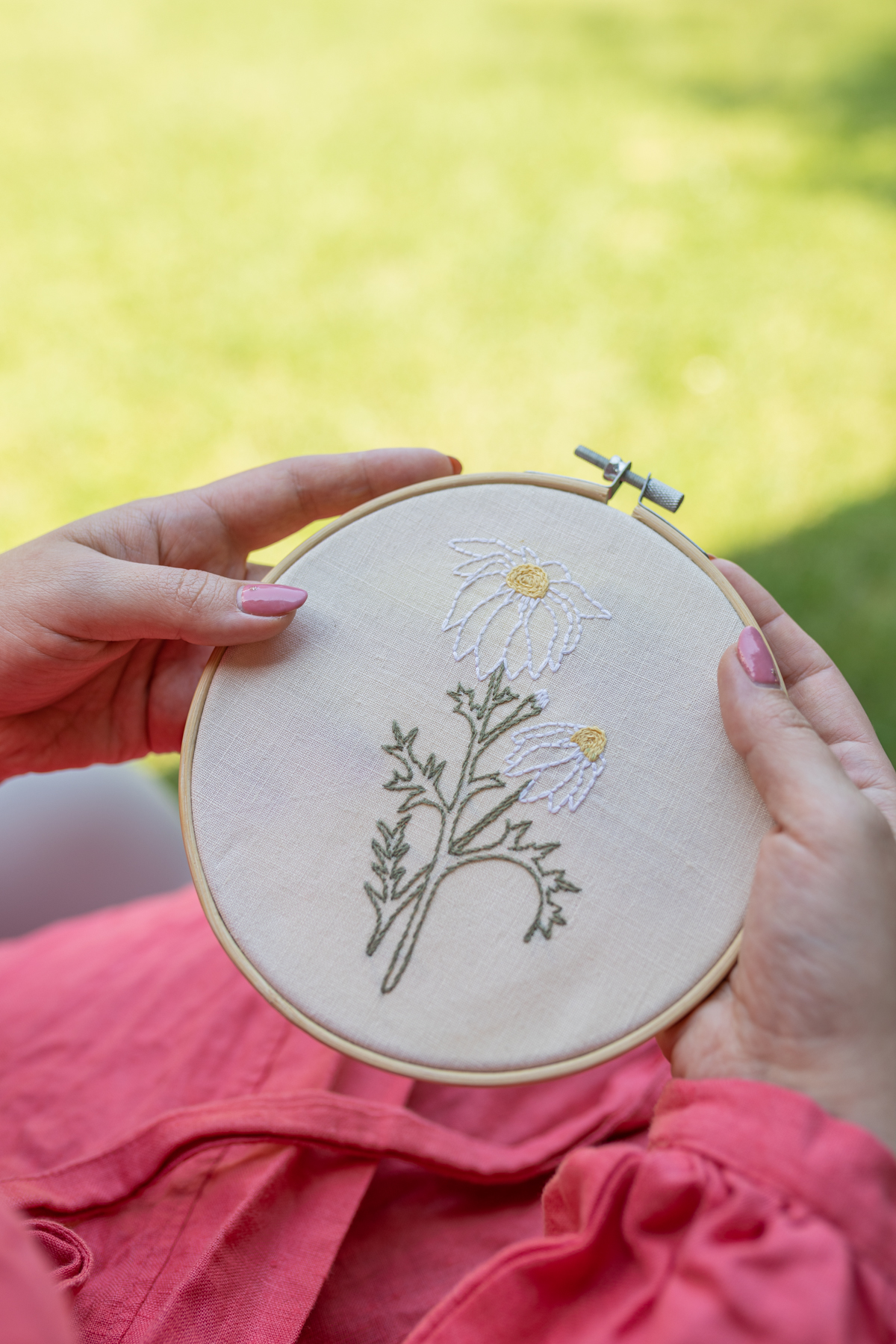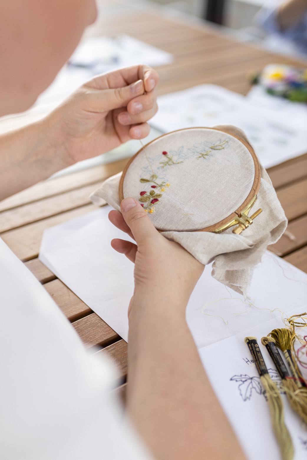 - zapozna się z potrzebnymi do pracy narzędziami: tamborkiem, igłami, nićmi,