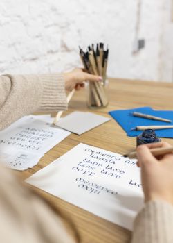 Zaproszenie na warsztaty kaligrafii to wspaniały pomysł na prezent dla osoby, która uwielbia pisać i chce nauczyć się robić to na zupełnie nowym poziomie. To dobra propozycja dla tych, którzy ceniącą sobie estetykę i zauważają piękno w codziennych zajęciach. Kaligrafia przeżywa w ostatnich latach swój renesans, a zainteresowanych tą dziedziną tworzenia jest coraz więcej. Jeśli chcesz podarować prezent komuś lubiącemu odręczne pisanie i nierozstającemu się z notatnikiem – to najlepszy wybór! Nasze warsztaty kaligrafii to pojedyncze, jednorazowe spotkania. Na każdym z nich jest poruszany inny temat związany z historią kaligrafii, a kursanci uczą się innego rodzaju pisma. Zajęcia prowadzone są w sposób dostosowany zarówno do osób zupełnie początkujących, jak i mających doświadczenie w kaligrafowaniu.