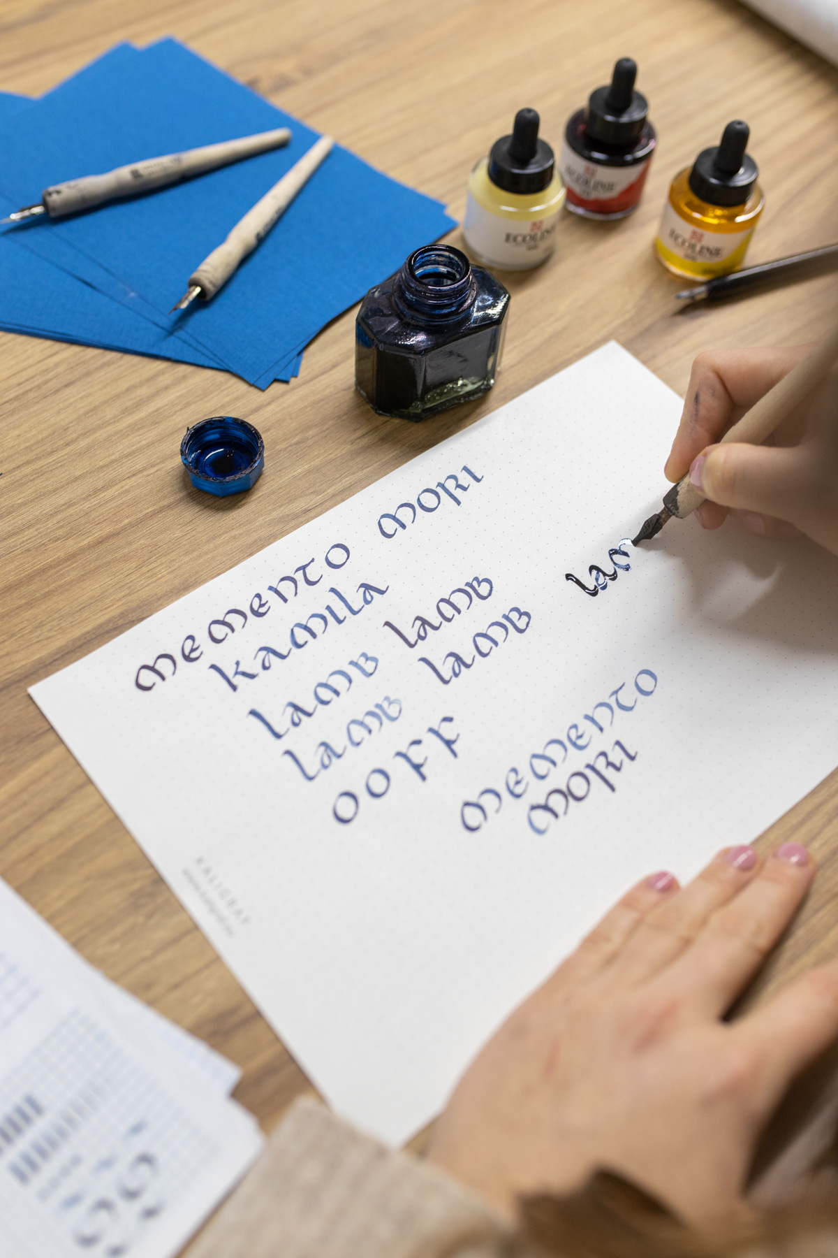 - pozna narzędzia potrzebne do kaligrafowania oraz sposoby ich użycia,
