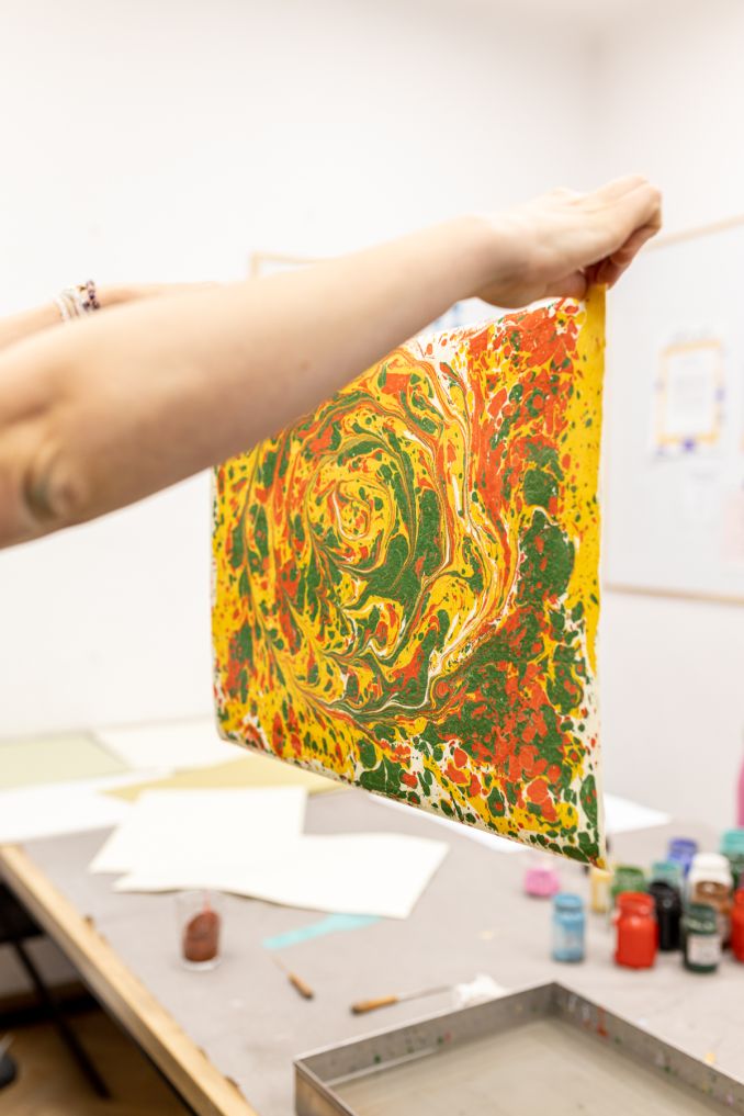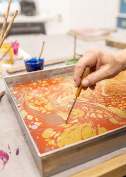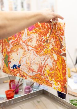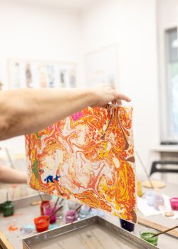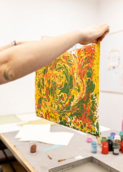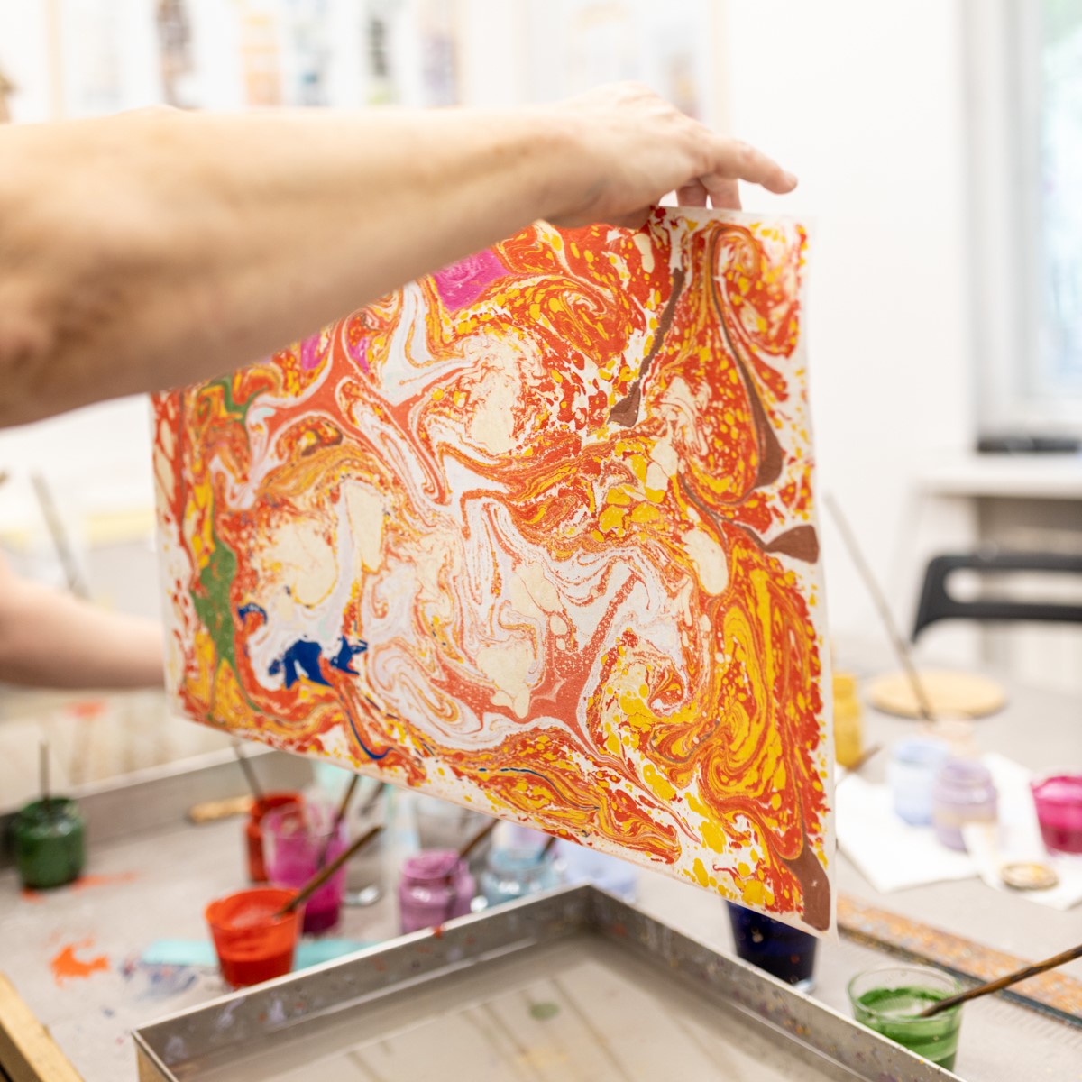 Te zajęcia są chyba najbardziej widowiskowymi z naszej oferty i skupiają wokół siebie duże grono zainteresowanych. Nic dziwnego – turecka sztuka tworzenia na wodzie niesamowitych wzorów i kształtów oraz odbijania ich na papierze jest wyjątkowo efektowna i zaskakująca.