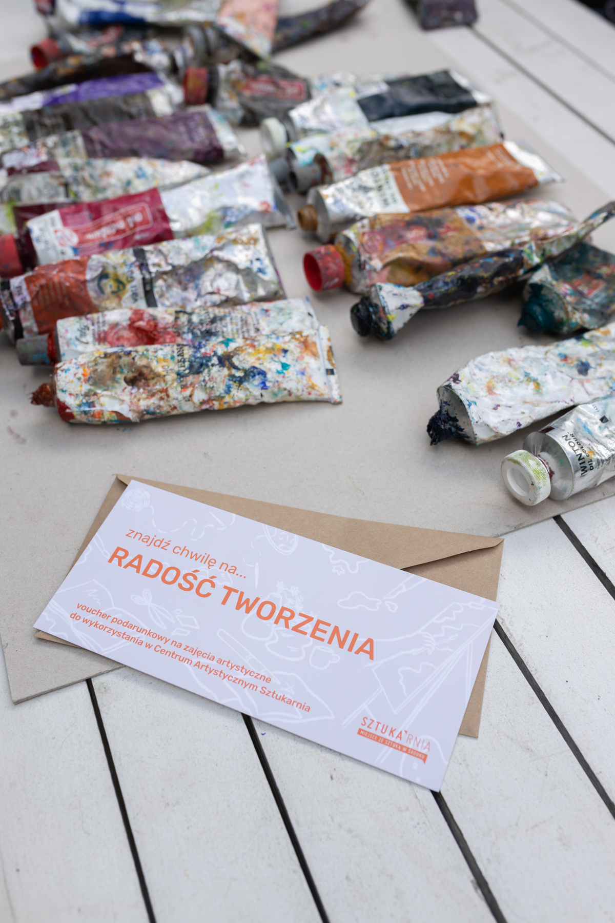 Najlepszy prezent to taki, który umożliwi obdarowanej osobie odnalezienie w sobie nowej pasji i pozwoli kreatywnie i twórczo spędzić czas. A może chcesz podarować radość tworzenia komuś, kto już maluje, rysuje, lepi i potrzebuje wsparcia profesjonalnego instruktora, by stawiać dalsze kroki w wybranej technice? Niezależnie od poziomu zaawansowania uczestnika, nauczymy każdego – rysować, malować, toczyć na kole, rzeźbić, haftować, robić zdjęcia i tworzyć lasy w słoiku. Po Twojej stronie będzie wręczenie vouchera – my zajmiemy się całą resztą. Obdarowana przez Ciebie osoba będzie mogła sama telefonicznie lub mailowo umówić się z nami na wybrany przez siebie warsztat, mieszczący się w cenie wykupionego przez Ciebie vouchera. Jeśli nie wiesz, które zajęcia w stu procentach ją ucieszą, to będzie najlepszy wybór ;).